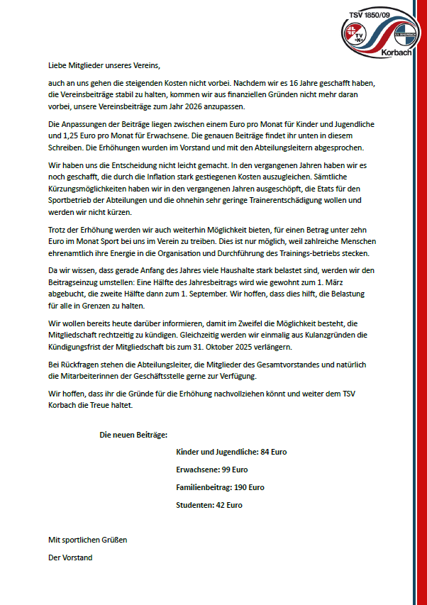 Beitragserhöhung 2026 Liebe Mitglieder unseres Vereins, auch an uns gehen die steigenden Kosten nicht vorbei. Nachdem wir es 16 Jahre…