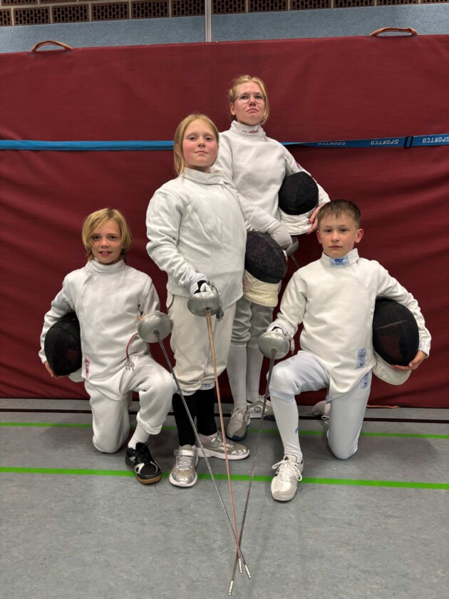 Auf dem Bild: links Loan Grebe, stehend daneben Amelie Pfeifer, stehend dahinter Aileen Ahls, rechts Julius Hein Erfolgreich in die…